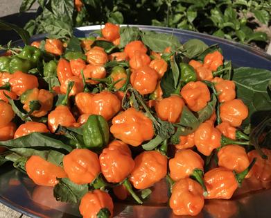 Fresh locally grown Habanero Peppers.